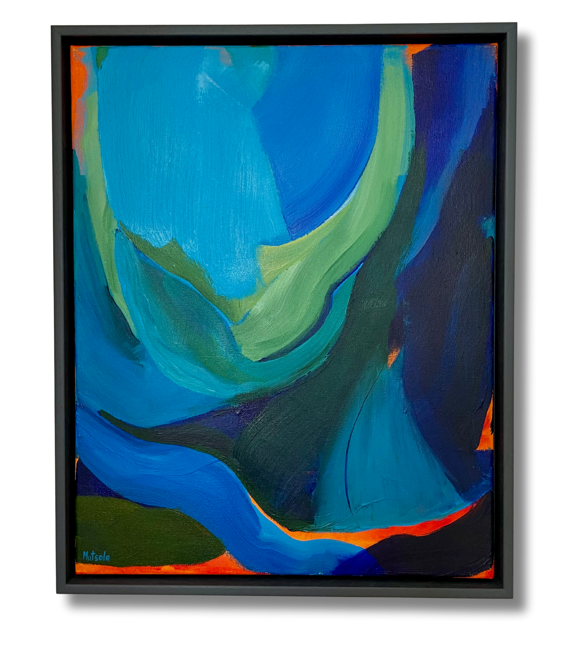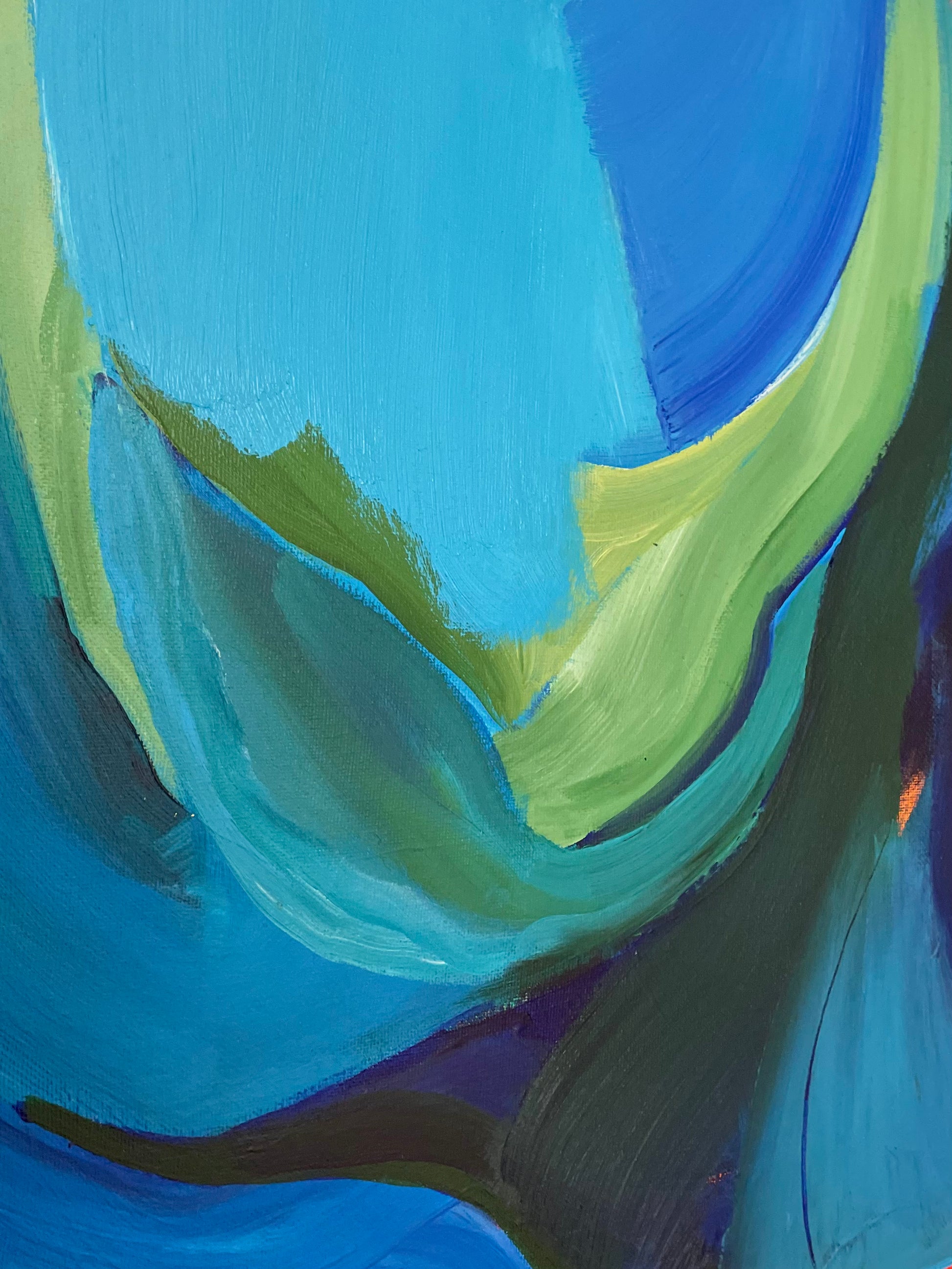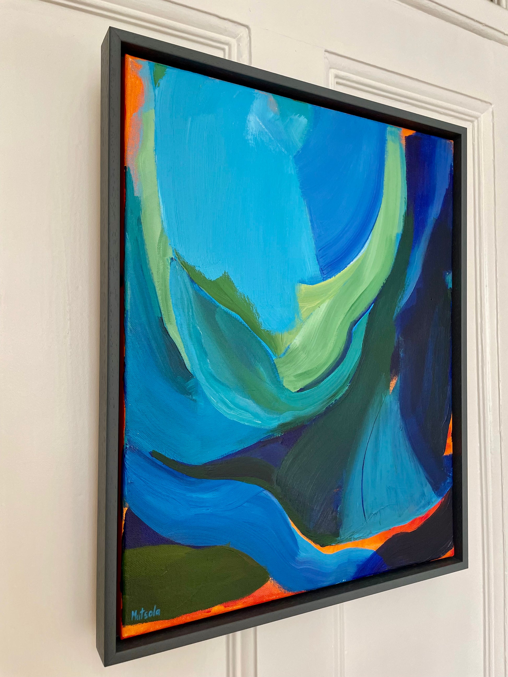 Blue and green create a sense of movement, like water flowing forward, while the brighter orange edges bring energy, warmth, and possibility. They remind us that even when taking the first step feels frightening, there is always a light shining in the distance that gives us hope.