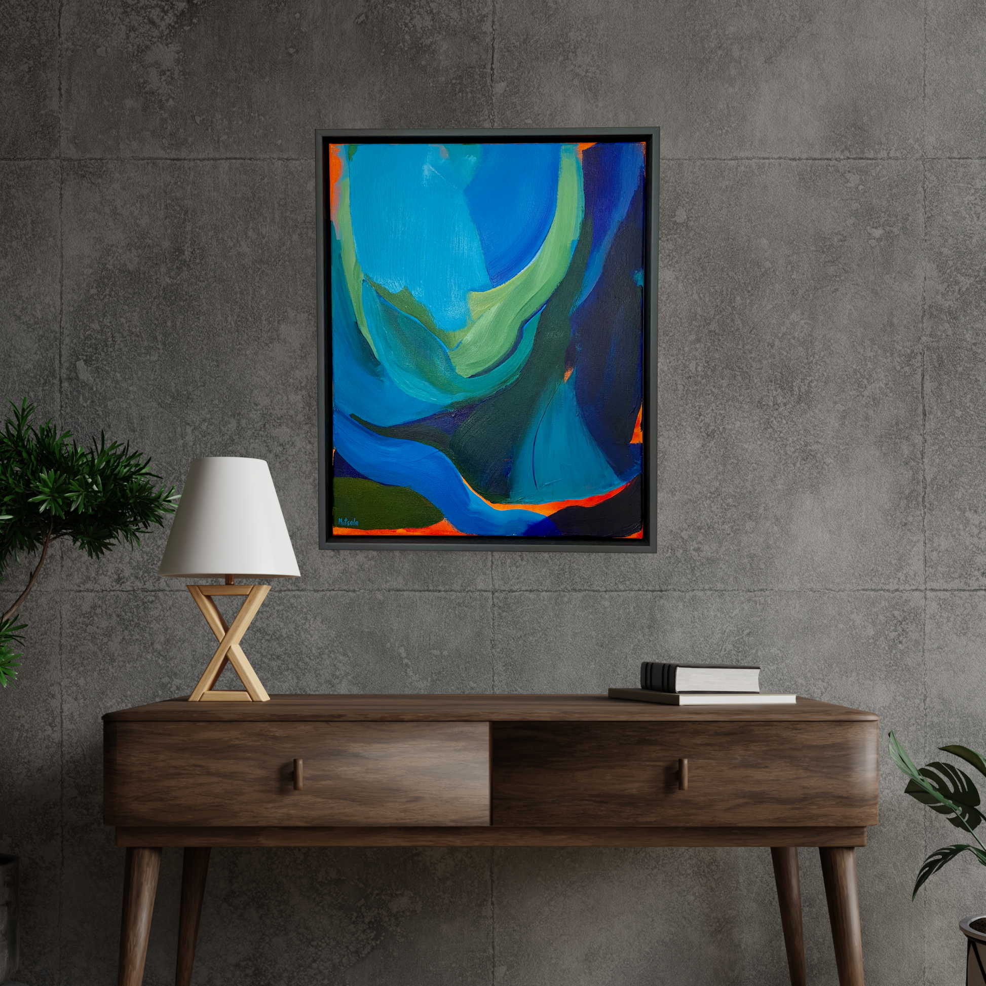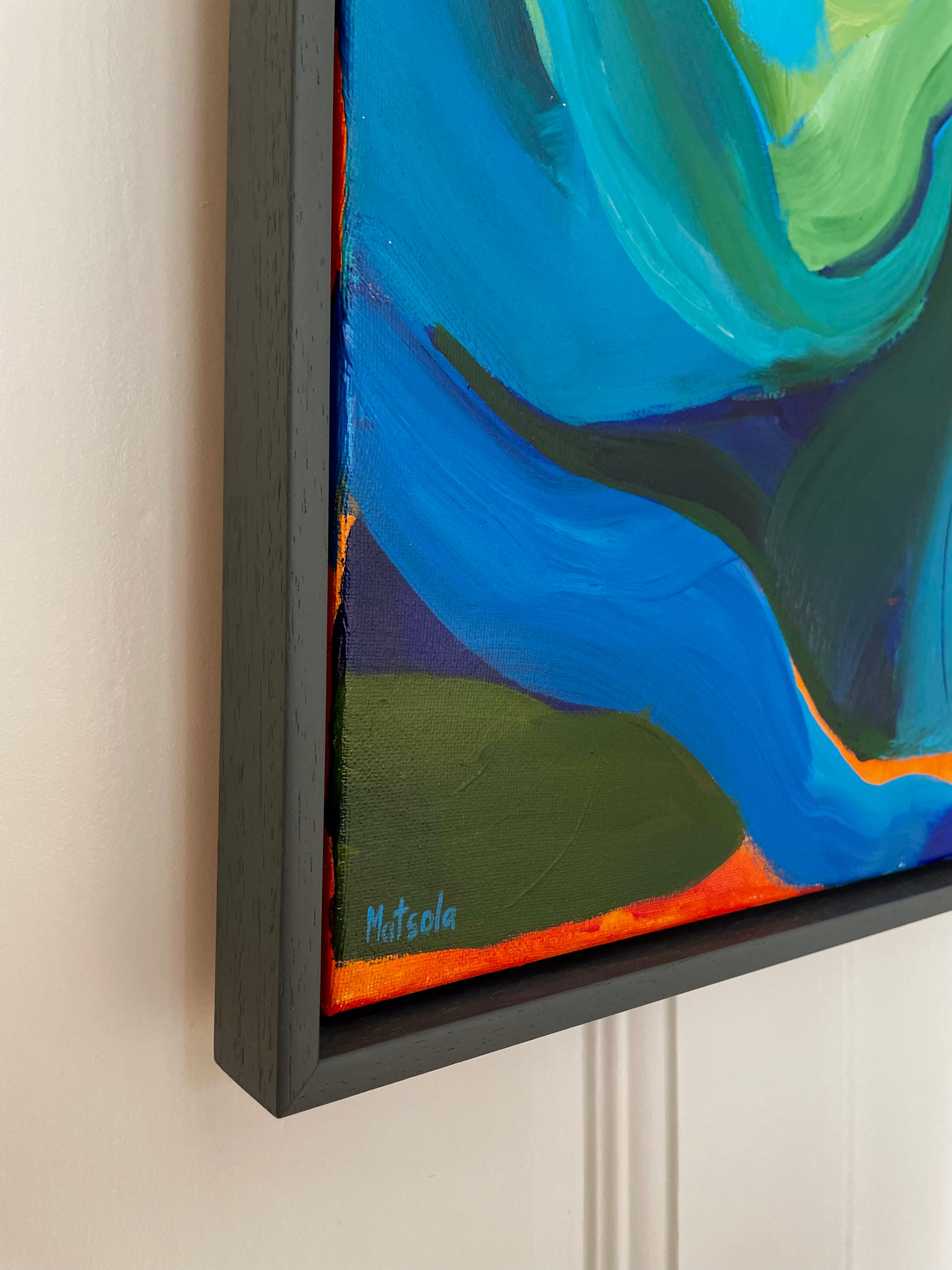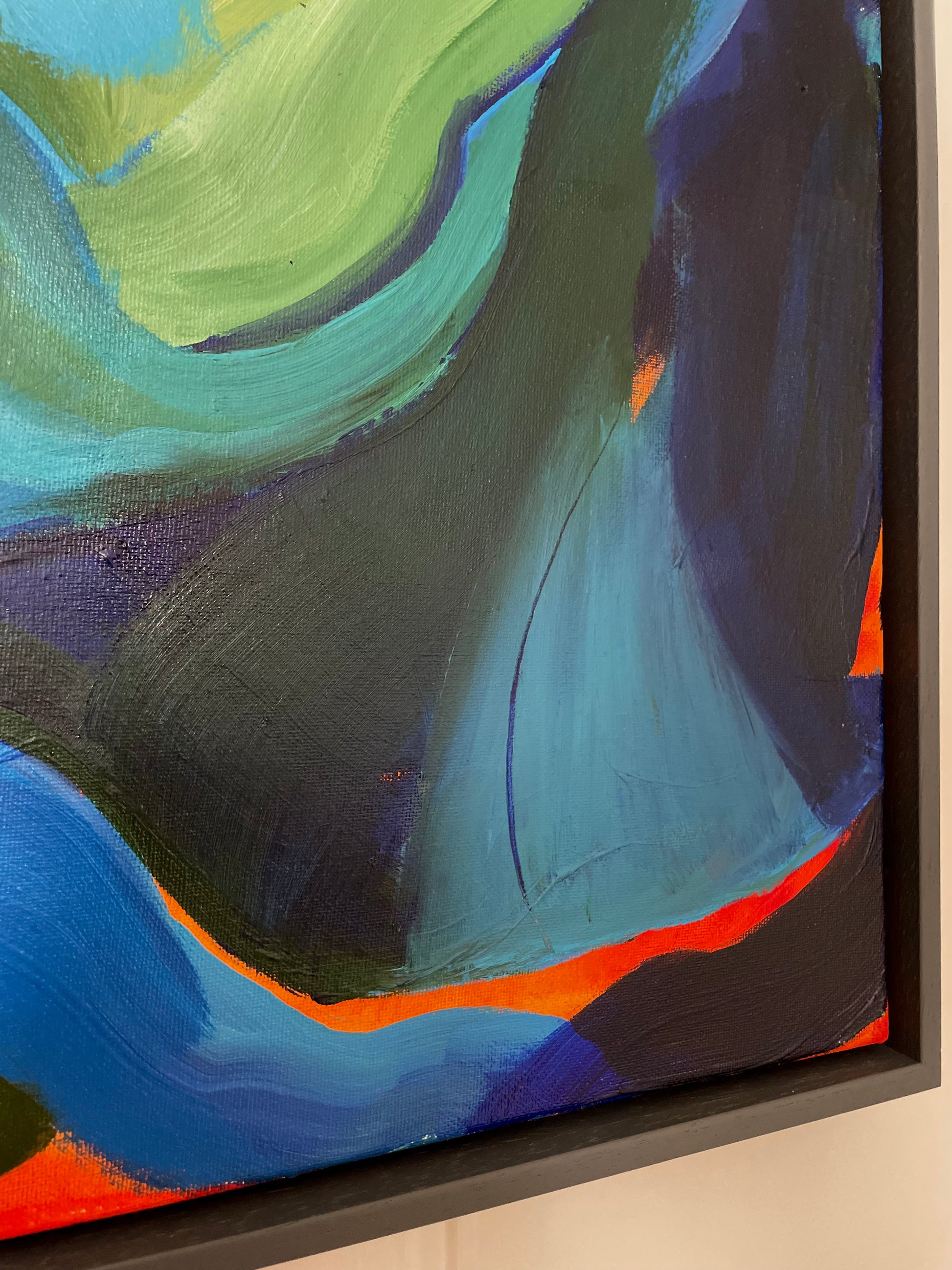 Blue and green create a sense of movement, like water flowing forward, while the brighter orange edges bring energy, warmth, and possibility. They remind us that even when taking the first step feels frightening, there is always a light shining in the distance that gives us hope.
