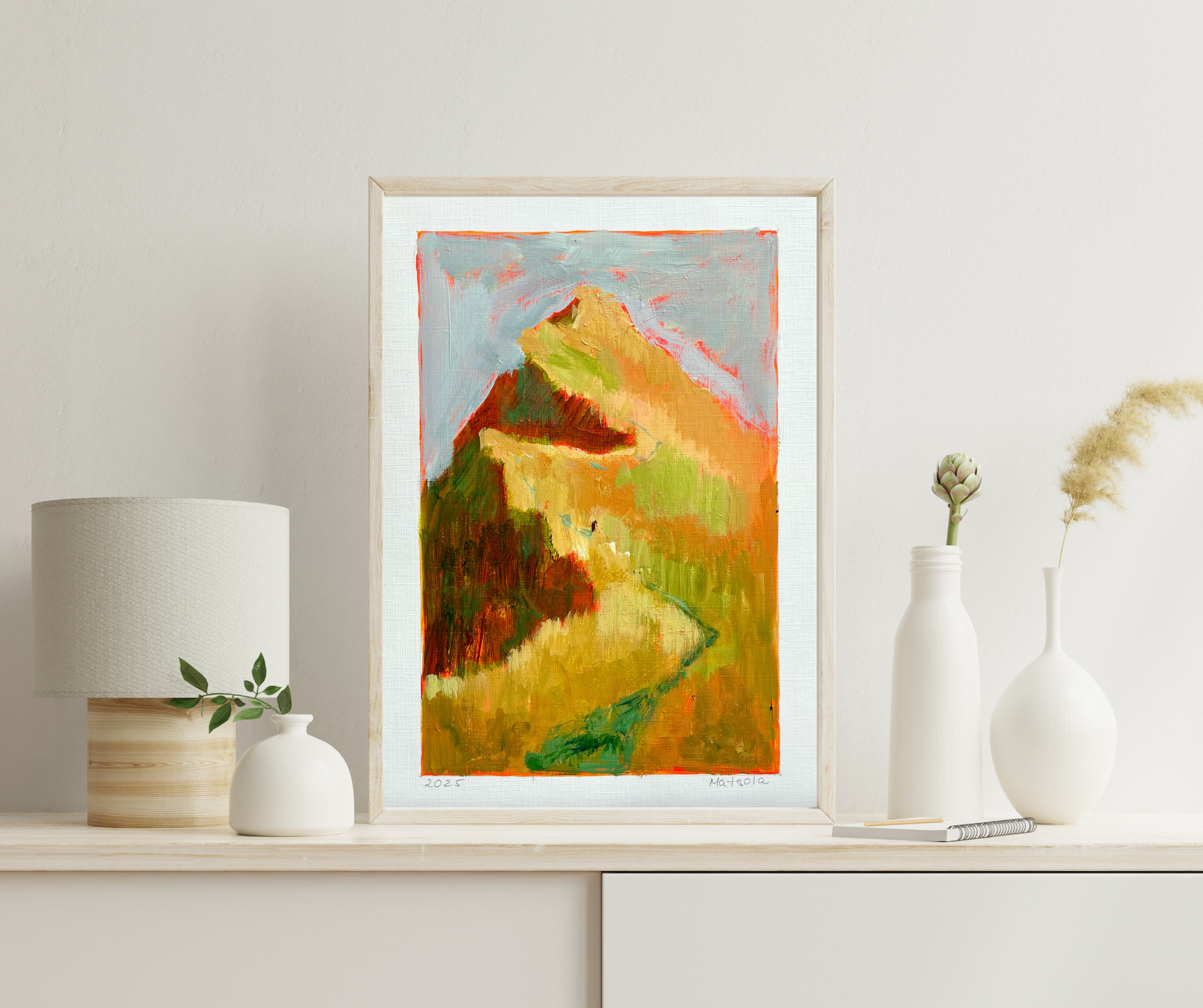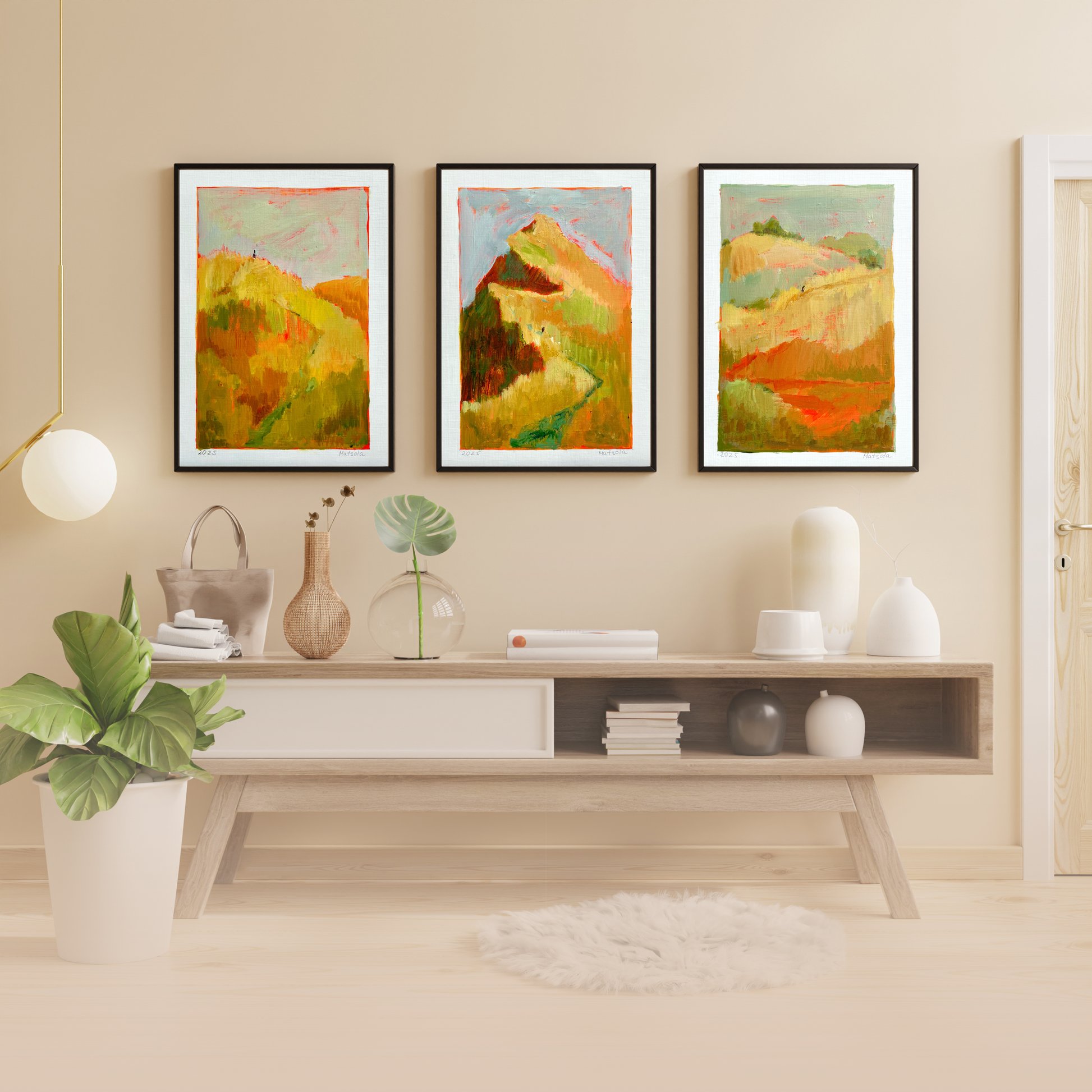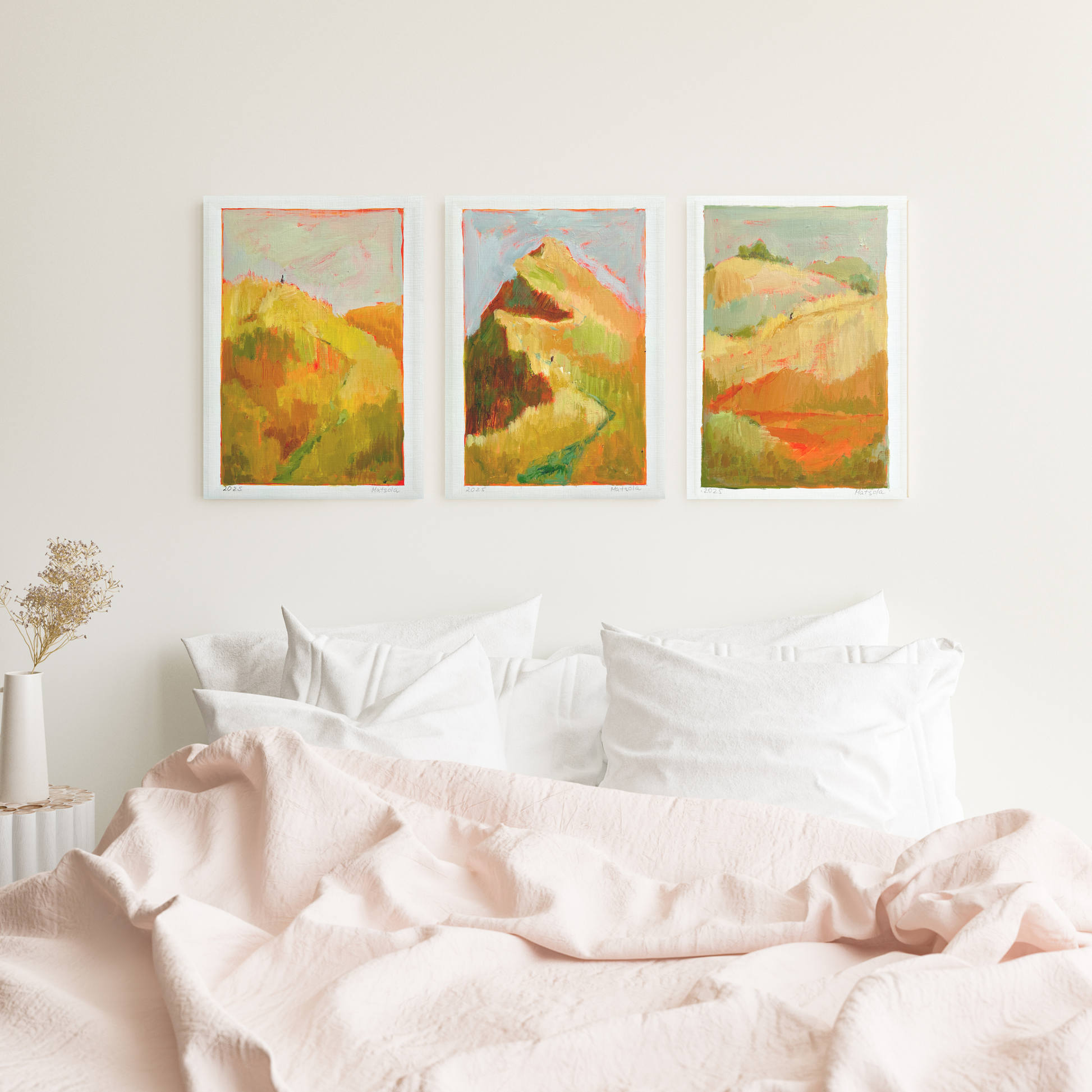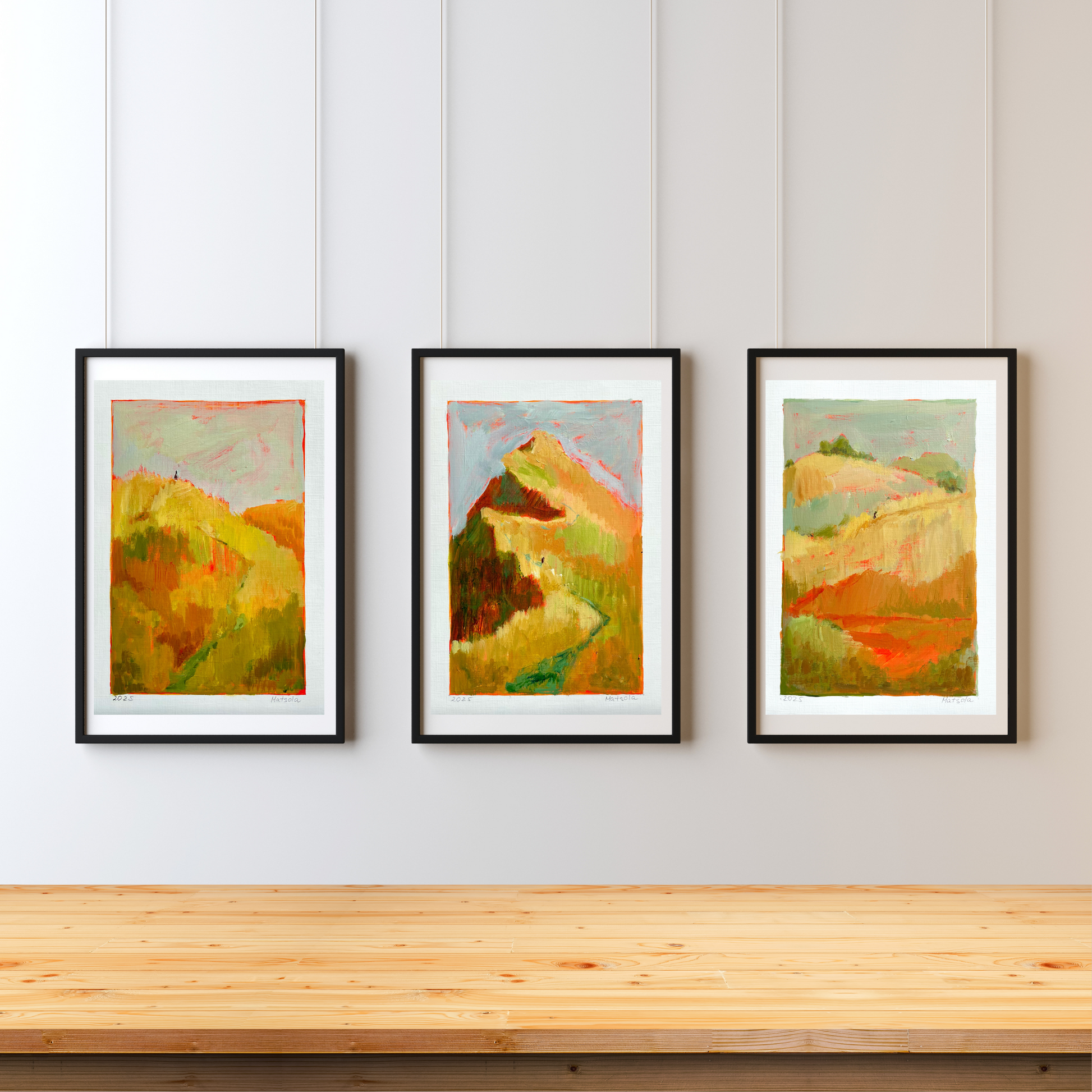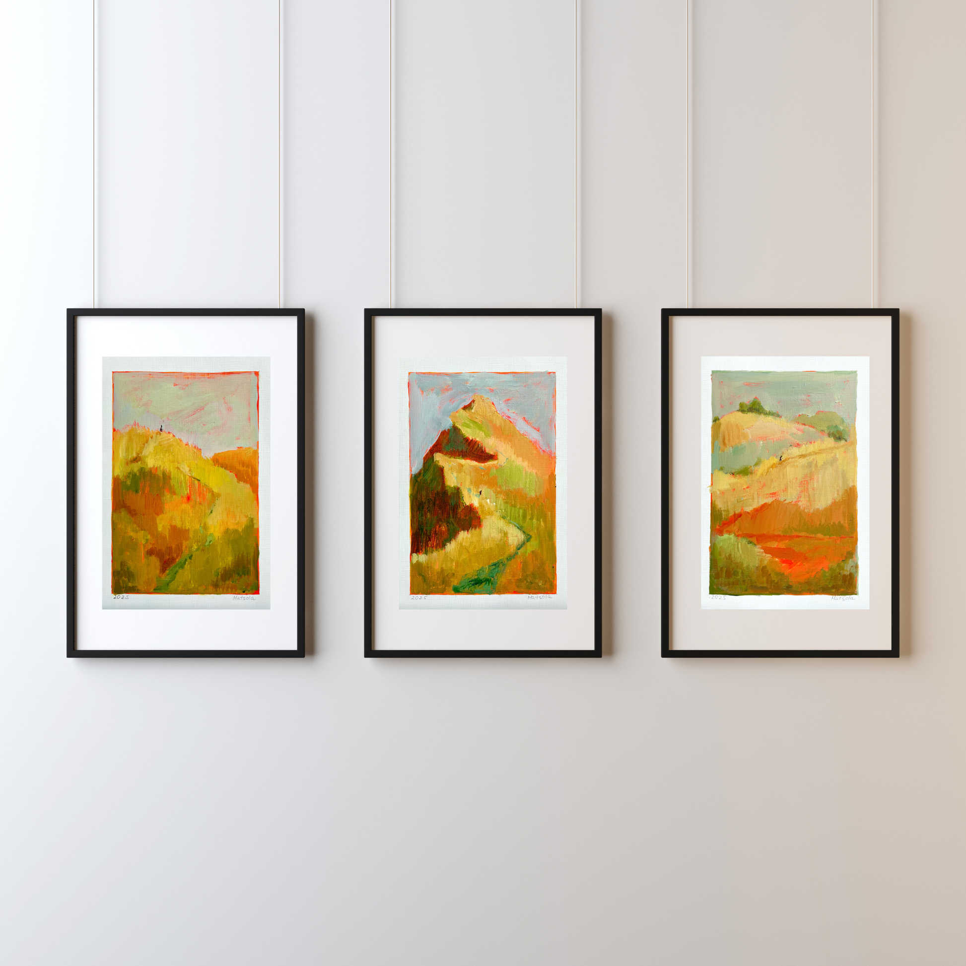 A series of paintings created after traveling through Scotland: endless fields, carefree animals, clean rivers. A symbiosis of human and nature, as if nothing is left behind - only clean air and a peace that envelops you completely.